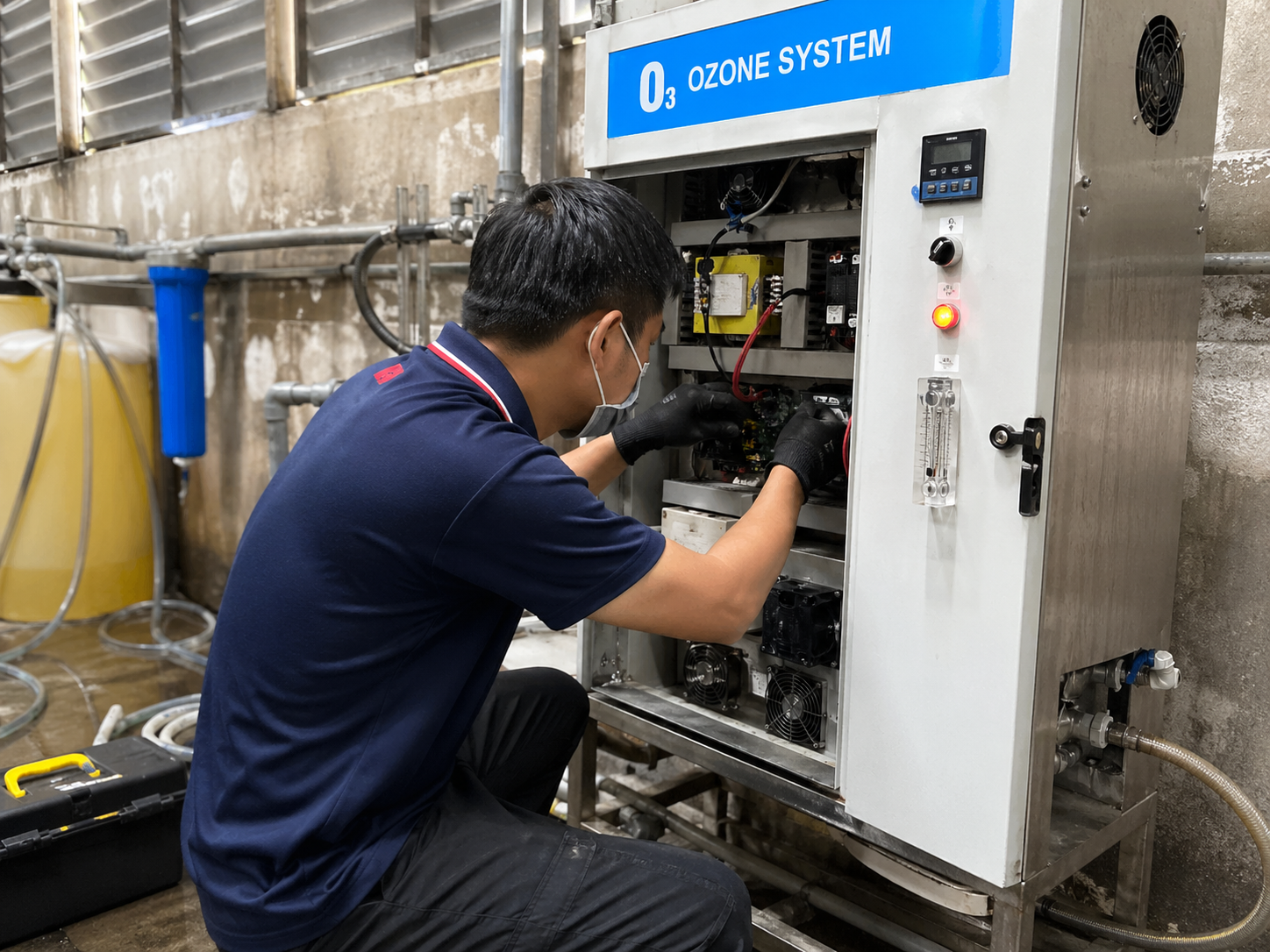 很多人選購臭氧機時只看「臭氧產量 g/h」,但實際效果還會受到空間大小、水量、接觸時間、氣液混合效率、濕度、溫度、氣源品質、管線設計與排風條件影響。專業臭氧系統需要依照現場條件進行整體評估。